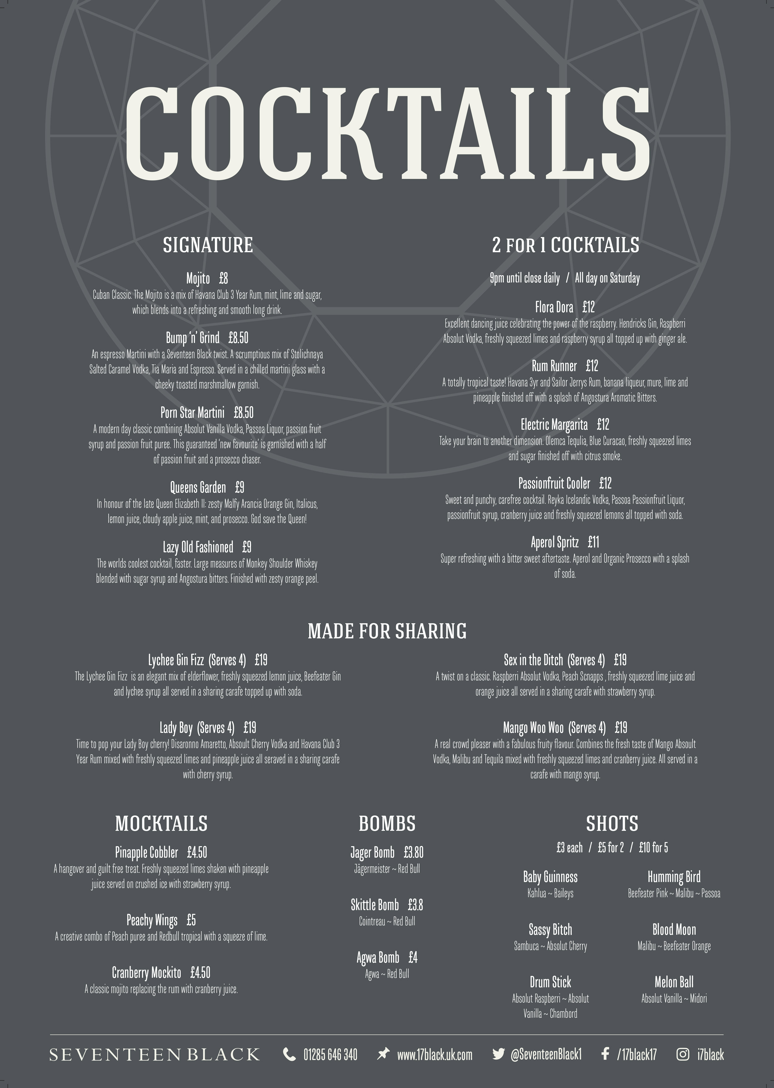Seventeen Black offers three very different vibes across three floors. An award-winning seafood restaurant, a cocktail /wine bar and a 'for hire' night club. We have several options available.