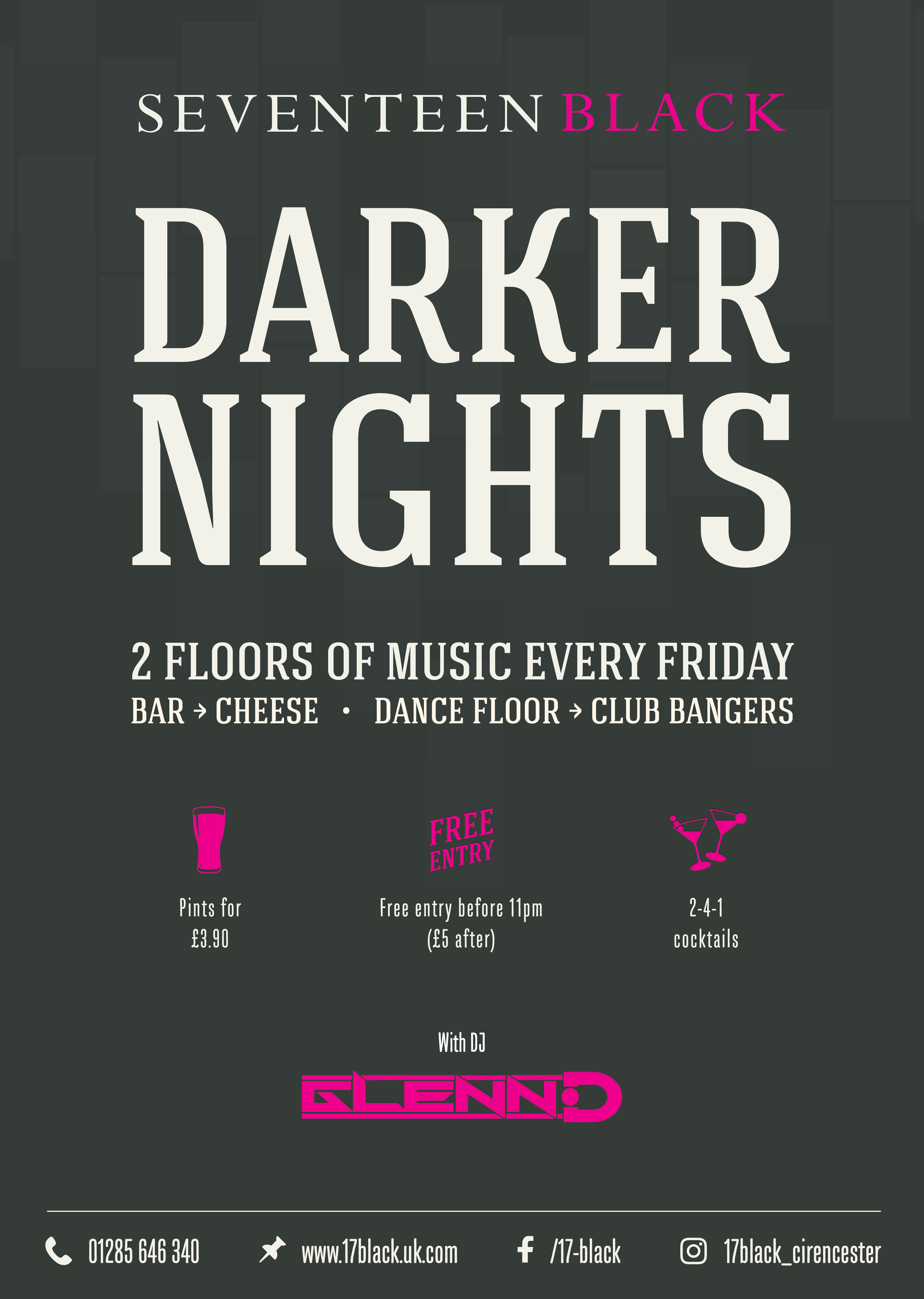 Seventeen Black offers three very different vibes across three floors. An award-winning seafood restaurant, a cocktail /wine bar and a 'for hire' night club. We have several options available.